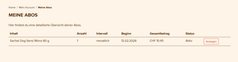 Wichtig: Passe bei jeder Aboänderung dein Wunsch-Versanddatum neu an, ansonsten wird dein Abo am nächsten Tag versendet.